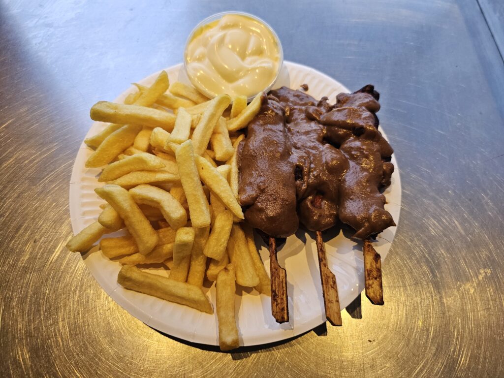– Eigengemaakte pindasaus. (Uitzondering menu kipsate. Daar is het al inbegrepen)